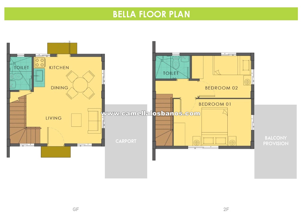 Bella has a lot area of 80 and a house area of 53 sqm. It's a single attached house with two bedrooms, two toilets and baths, a living area, dining area, kitchen, a carport, provision for a balcony, and a laundry and service area. This house is Camella Los Banos's most affordable unit. At the same price, it is better than buying a condo.