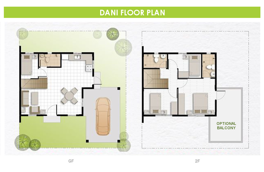 Dani has a lot area of 110 sqm and a house area of 83 sqm. It’s a single attached house with four bedrooms, three toilets and baths, a living area, dining area, kitchen, a carport, provision for a balcony (for an additional ₱150,000 to construct), and a laundry and service area. If you want that extra room at the ground floor and a more affordable 2-storey modern house, Dani is perfect for your growing household needs.